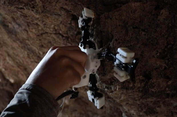 Хоть робот и обладает четырьмя лапами, но по движениям напоминает паучка и умеет цепляться за поверхности за счет трехпальцевых захватов. Также он оснащен процессором и видеокамерой, чтобы исследовать местность.
